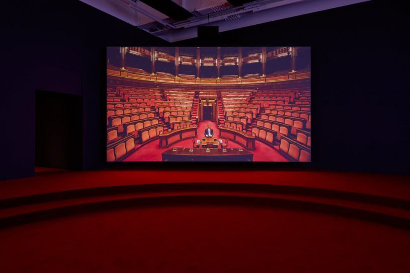 Filmed in international senate chambers, Angelica Mesiti’s large-scale video installation imagines a community of movement, poetry and song – exploring our need to come together democratically across many nations, to speak differently, act together, and form new assembles.